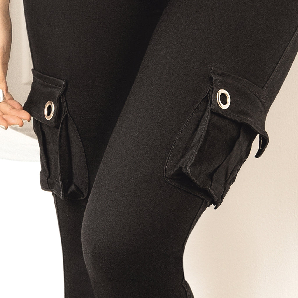 Questo pantalone cargo skinny nero è realizzato denim colombiano elasticizzato, studiato per valorizzare le curve con naturalezza e offrire il massimo comfort durante tutta la giornata.
